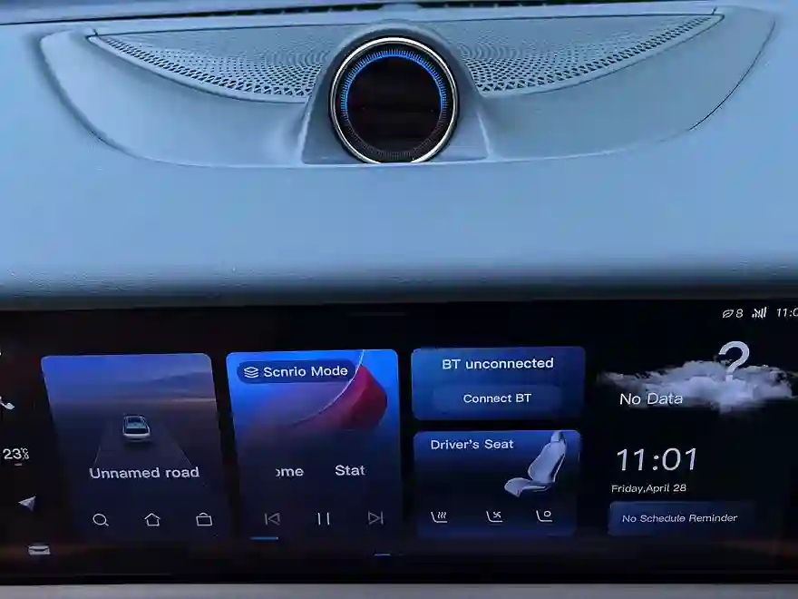 В салоне две широкоугольные салонные камеры, передняя с функцией face id. Каждая направлена на свой ряд сидений, можно делать селфи. Но это «побочный эффект», а основная задача – следить за водителем (система контроля усталости) и сидящими сзади детьми (изображение можно вывести на центральный или правый дисплей). Фронтальная камера обеспечивают и функцию видеорегистратора.